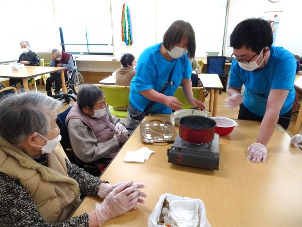 今日は、お豆腐入りの白玉ぜんざい作りをしました。