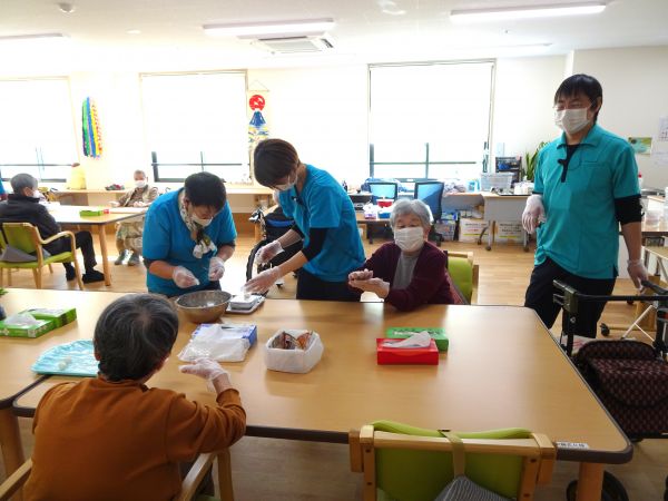 今日は、お豆腐入りの白玉ぜんざい作りをしました。